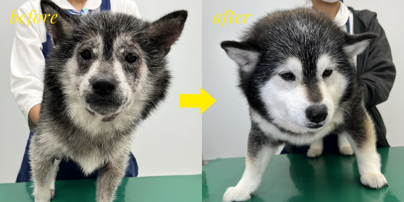 飼い主様も「見違えるほど!すごい!」とびっくりするくらいフサフサいなりました。